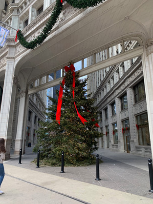 Before I head south, I once again wanted to head to the city to view all of the holiday decorations. One of my favorite locations in the city is by the Wrigley Building on the Magnificent Mile. The building is right along the edge of the Chicago River and is surrounded by, in my opinion, some of the most beautifully designed buildings in the city. Currently under the Wrigley Buildings arch is a huge Christmas tree covered in lights and a large red bow to top it off. When my friends and I arrived at the location the sun came out of the clouds and made everything shine.